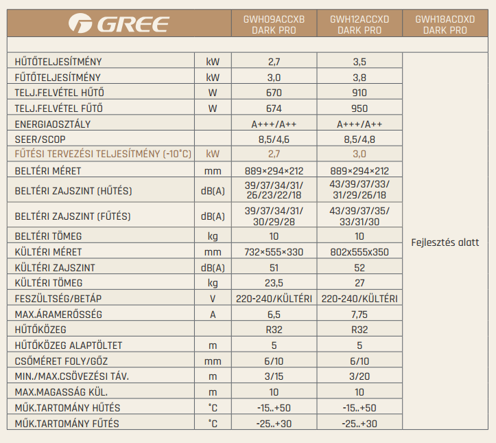 Ön éppen véleményezi: Gree GWH09ACCXB-K6DNA1G Dark Pro Inverteres Split klíma