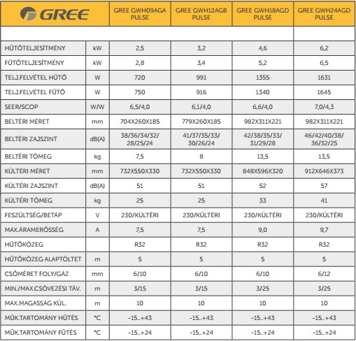 A Gree GWH09AGB Pulse Inverteres Split klíma fontos tulajdonságai: