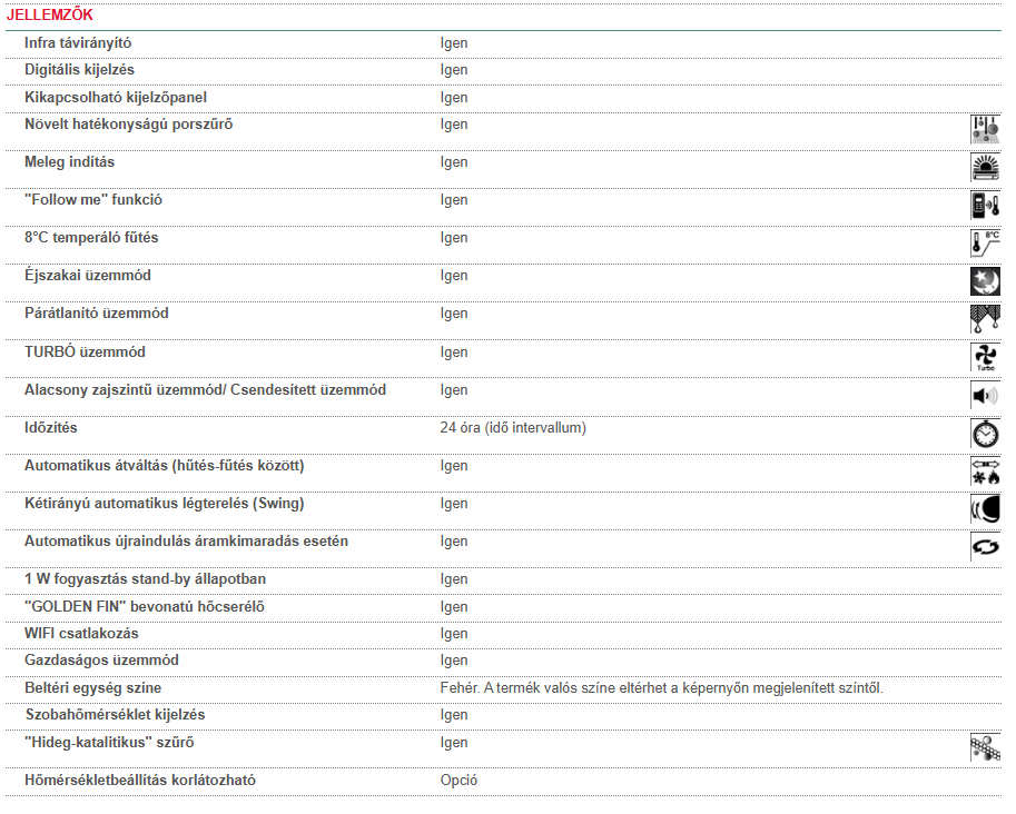 Felszerelés és beüzemelés díja bruttó 55.000 Ft, mely tartalmazza a kiszállást, a készülék helyszínre szállítását, a kültéri és beltéri egység felszerelését, elektromos betáp kiépítését aljzatba max. 5 méterig*, a kültéri tartókonzolt, rögzítő elemeket, a vákuumozást, a berendezés beüzemelését és azzal kapcsolatos dokumentumok kitöltését (pl.: beüzemelési jegyzőkönyv, garanciajegy...), valamint a takarítást.